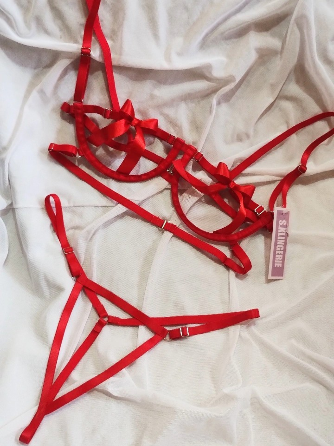 conjunto vazado regulável com detalhe no busto em lacinho.